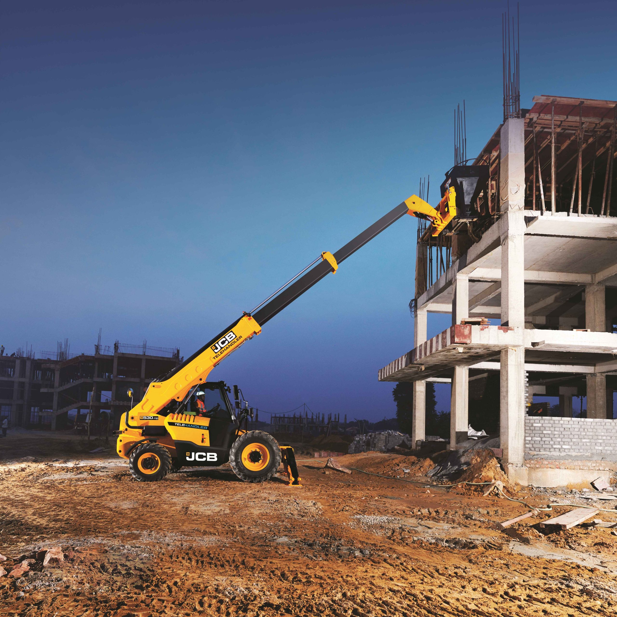 JCB 530-110 safely lifts loads of up to 3,000 kg to a lift height of 11m. The strength of JCB’s telescopic boom and hydraulics allows 530-110 to reach forward and place a normal construction or industrial load of 1,000 kg 7.5m, horizontally.